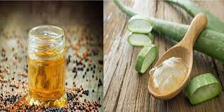 थोड़े से सरसों के तेल के साथ एलोवेरा मिलाएं। फिर इसे अपने बालों और स्कैल्प पर लगाएं। लगभग 30 से 40 मिनट तक रखने के बाद किसी माइल्ड शैंपू से बालों को रगड़ कर साफ कर लें। ऐसा सप्ताह में दो बार करें। यह मिश्रण आपके बालों को पोषण देने और उन्हें क्षतिग्रस्त होने से बचाने में मदद करेगा।
