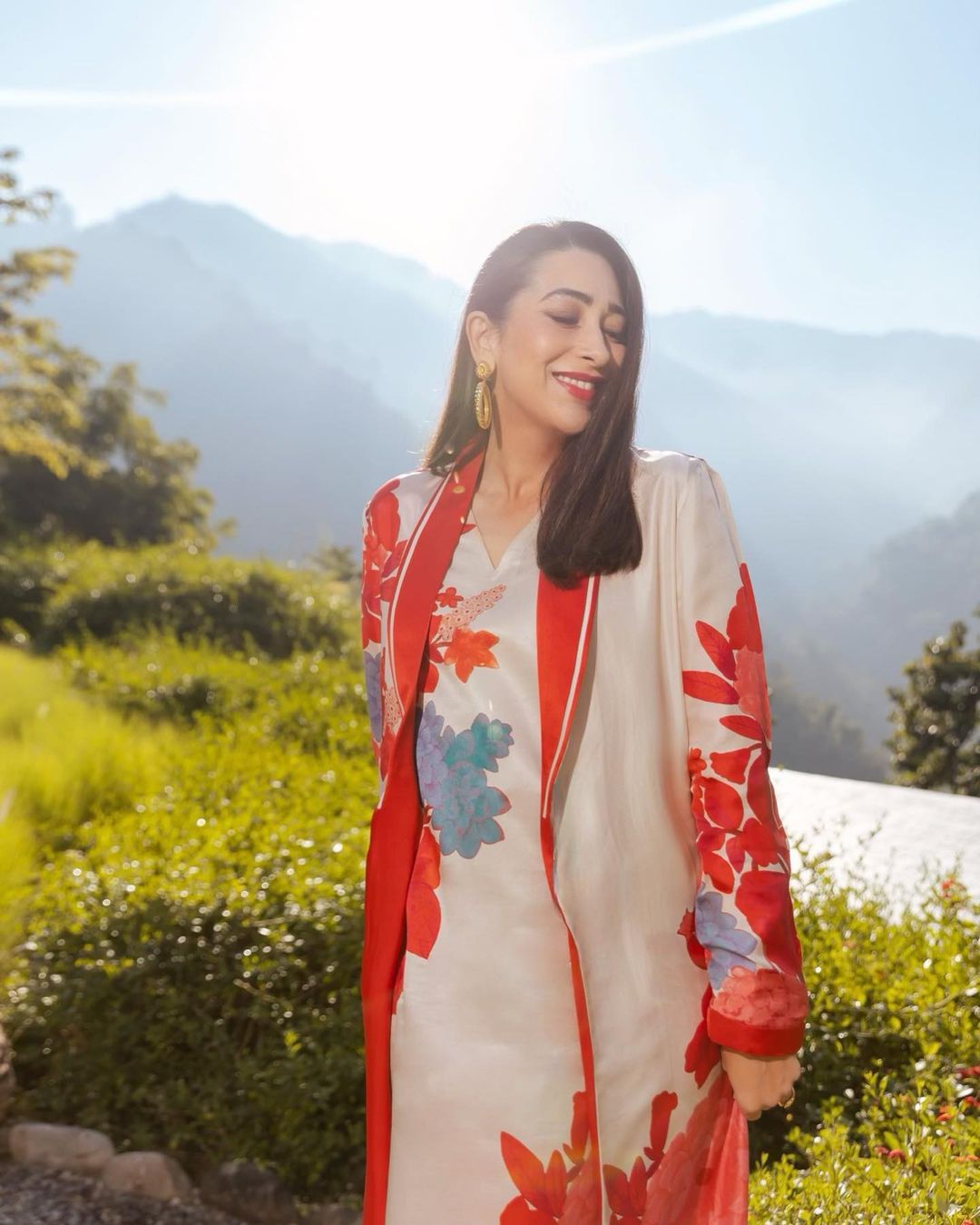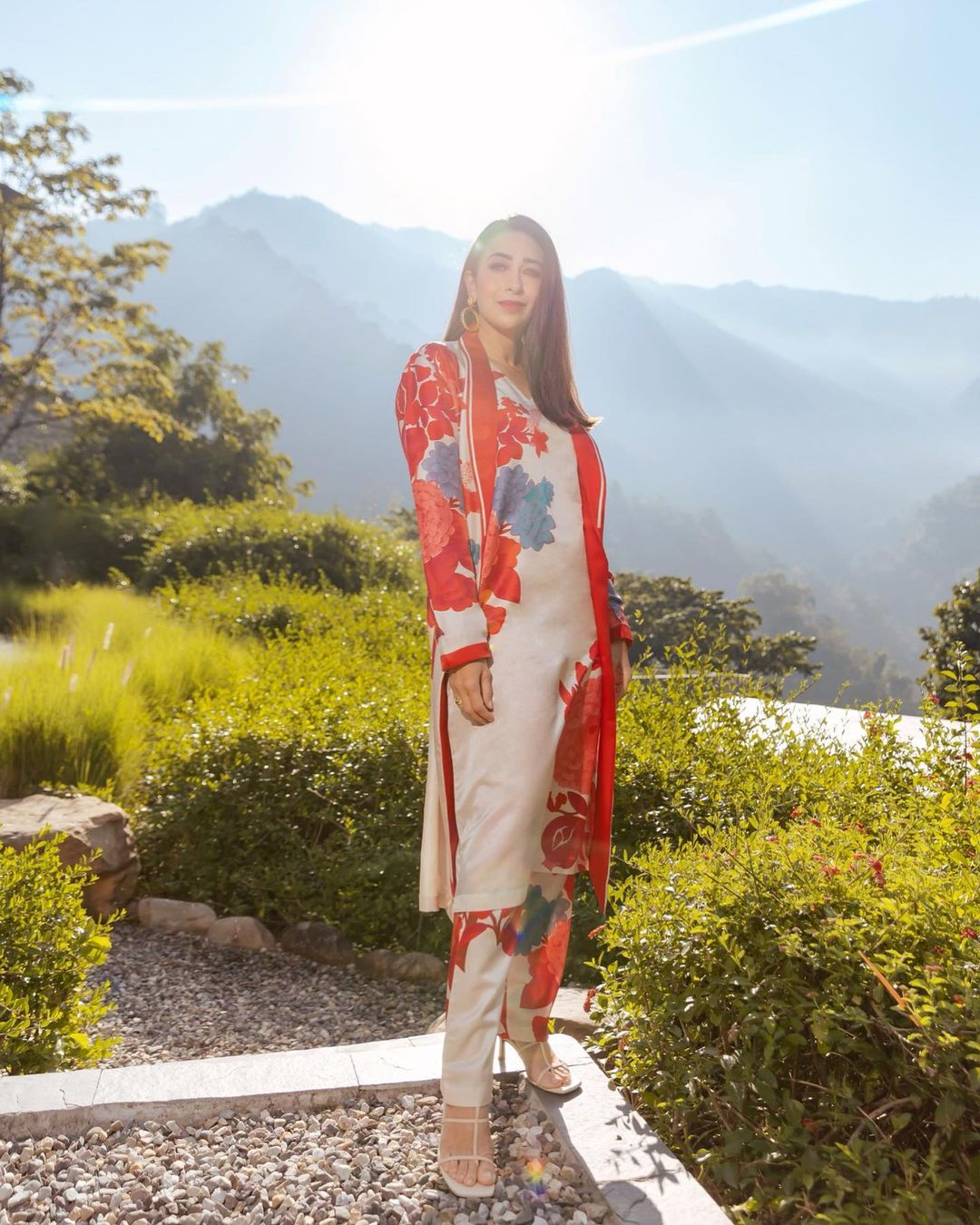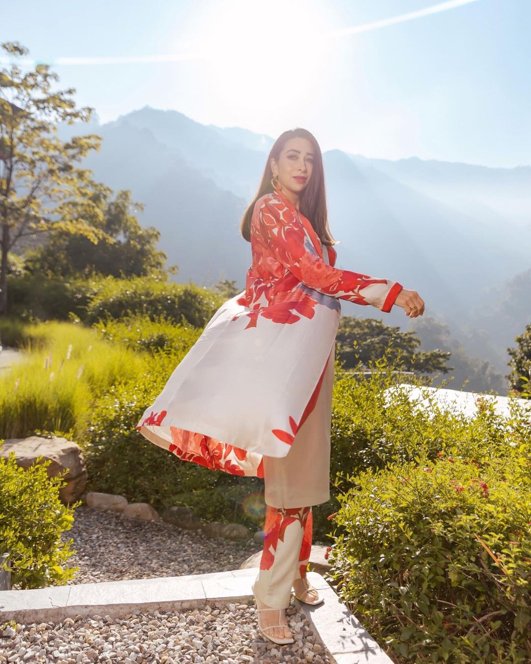 यही नहीं इंस्टाग्राम पेज पर सिने अभिनेत्री करिश्मा ने कुछ फोटो भी पोस्ट किए हैं। जिनमें वह पहाड़ की वादियों में हरियाली के बीच सफेद और लाल रंग के सलवार कुर्ते में नजर आ रही है। पीछे खूबसूरत पहाड़ और सूर्योदय या सूर्यास्त का मनोहरी दृश्य नजर आ रहा है।
