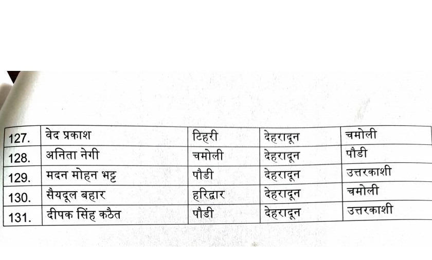 पुलिस उप महानिरीक्षक गढ़वाल रेंज के0एस्0 नगन्याल द्वारा पर्वतीय एवं मैदानी जनपदों मे निर्धारित समयावधि पूर्ण करने एव जनपदों मे उपनिरीक्षकों की उपलब्धता का संतुलन बनाये रखते हुए परीक्षेत्र के जनपदों मे नियुक्त 131 उपनिरीक्षक नागरिक पुलिस के स्थानांतरण किये गये.